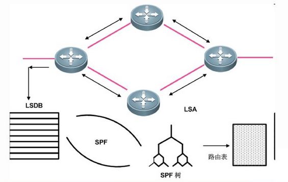当路由器中形成了全网的拓扑视图后,它就可以通过最短路径算法来计算当前节点到其它路由器之间的最短路径了。当某台路由器的链路状态发生变化时,路由器采用洪泛法向所有路由器发送此信息,其它路由器使用收到的信息重新计算最佳路径,重新生成路由表(拓扑图)。