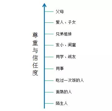 每个人成长的过程,都是公开象限不断放大的过程,而在公开象限放大的同时,我们收获的是与他人之间的尊重和信任。我们给自己最尊重和信任的人做个简单排序,就能一目了然。这样一个信任度的排序,其实也是与这些人之间的公开象限从大到小的一个排序。
